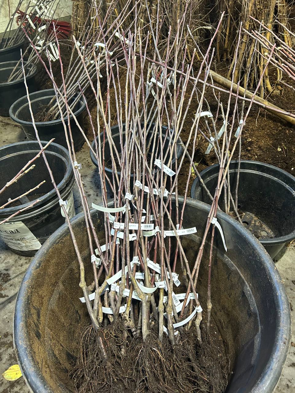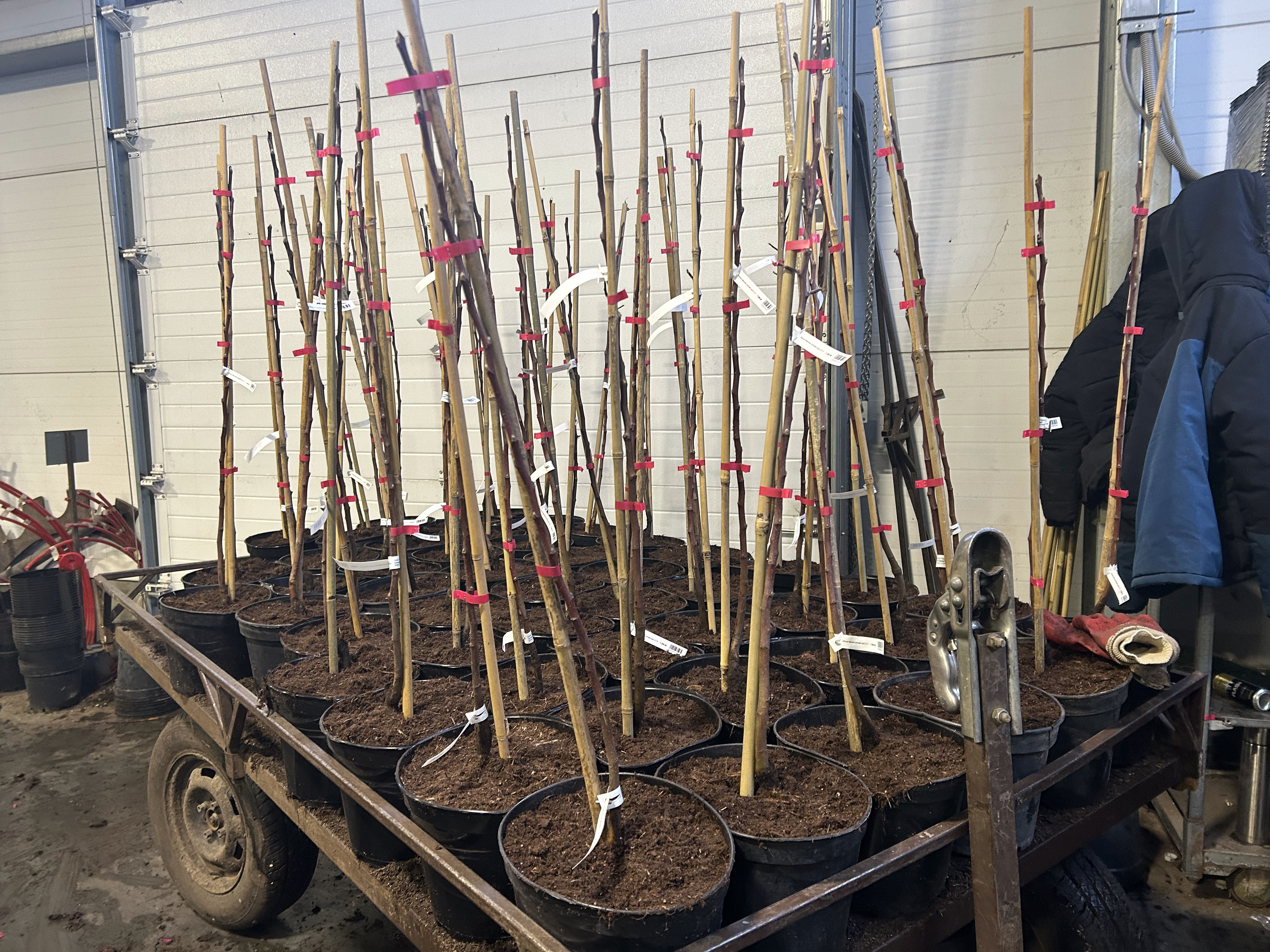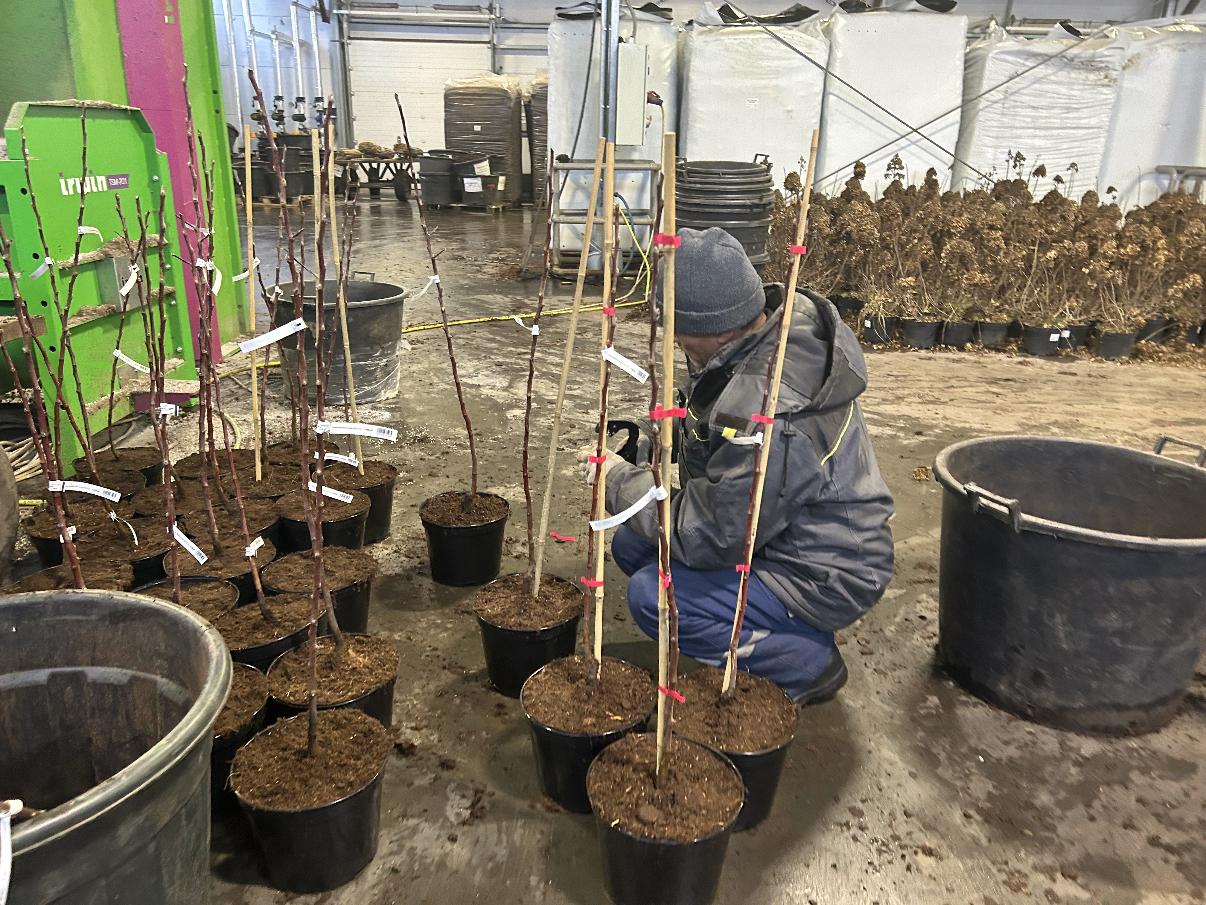 Каждое растение маркируется термолентой и отправляется на открытую площадку, где укрытое снегом проведет всю зиму